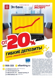 В Эл банке для юридических лиц работает уникальная программа «Гибкие депозиты». Она позволяет получать дополнительную выгоду от средств, хранимых на расчётном счёте компании. Главный принцип - «Деньги должны работать!».