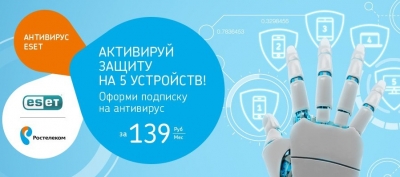 Воспользоваться предложением могут действующие или вновь подключаемые абоненты услуги «Домашний интернет». Подробности предложения и активация решения ESET NOD32 Smart Security Family по специальной цене доступны в разделе «Домашний интернет/Возможности» на сайте www.rt.ru. реклама