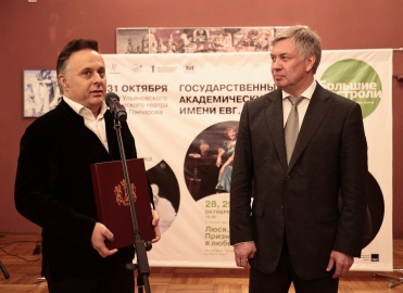 Вчера, 31 октября, на сцене Ульяновского драматического театра глава региона Алексей Русских вручил заслуженному работнику культуры РФ директору театра имени Евгения Вахтангова Кириллу Кроку знак губернатора «Благодарю».