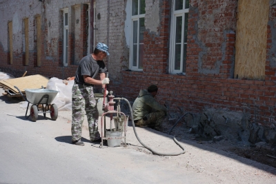 В 11-м лицее специалисты выполнили утепление и устройство стяжки пола в классах на первом и втором этажах, ведут отделку второго этажа, спортзала, меняют инженерные сети, обновляют отмостку и кровлю.