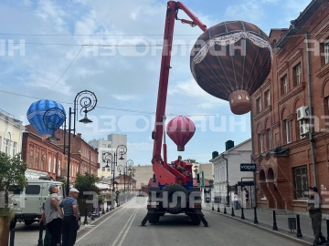 Сегодня, 11 июня, в Ульяновске на улице Федерации вместо китов появились воздушные шары. Сотрудники Городского центра по благоустройству подвесили над тротуаром и проезжей частью три аэростата-монгольфьера.