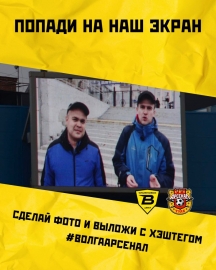Все, кто хочет попасть на большой экран центрального стадиона «Труд», могут сделать фотографии во время первого тайма матча «Волга» - «Арсенал». Их нужно разместить на своей странице в ВК с хэштегом #волгаарсенал. В перерыве фото покажут на табло.