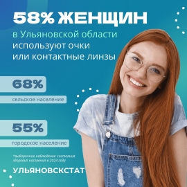 По данным Ульяновскстата, более половины жительниц региона старше 15 лет используют средства коррекции зрения. Статистика показывает, что 58% ульяновских женщин носят очки или контактные линзы, что свидетельствует о высокой распространённости проблем со зрением среди женского населения области.