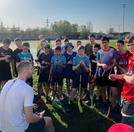 Воспитанник ульяновского хоккея с мячом Артём Бутенко принял участие в тренировке с воспитанниками ульяновской спортшколы на стадионе «Станкостроитель».