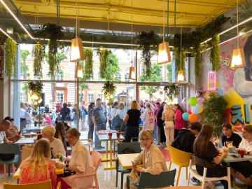Посмотреть на новое место в день открытия собрались сотни ульяновцев. Улицу перекрыли, у входа установили сцену и устроили танцы. На дороге образовалась длинная очередь из желающих перекусить.