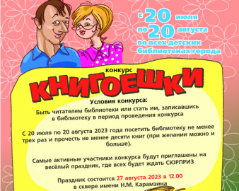 Самые активные «книгоешки» примут участие в веселом детском празднике, который пройдет 27 августа в 12:00 в сквере им. Н.М. Карамзина.