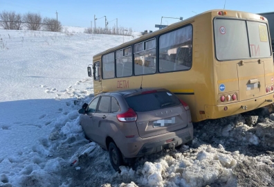 Напомним, сегодня на трассе «Казань - Буинск – Ульяновск» при повороте на село Арбузовка водитель автомобиля Lada XRAY при попытке обгона столкнулся со школьным автобусом, перевозившим детей. После столкновения транспортные средства съехали в кювет.