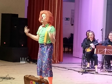 В Ульяновске он уже был. Тогда представлял надувной оркестр с музыкантами ульяновской «Державы». В этот раз с помощью Ульяновского государственного оркестра русских народных инструментов привёз свой клоунский чемодан, полный, как он их сам называет, щекотальных инструментов — дудочки, свистелки, ложки, трещотки, жалейку. Плясал с детьми «Валенки», весело и на равных общался даже с самыми неусидчивыми юными зрителями, то рассказывая об истории волынки, то демонстрируя, как растягивается баян, то размахивая дирижёрской палочкой необычно исполнял «Пещеру горного короля» Грига.