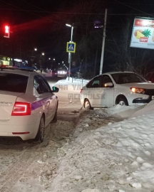 ДТП случилось на перекрестке улицы Димитрова и Тельмана. После него белая «Лада Гранта» улетела в сугроб.
