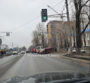Сегодня, 20 апреля, в Железнодорожном районе Ульяновска столкнулись маршрутка и легковой автомобиль, сообщают очевидцы в соцсети.