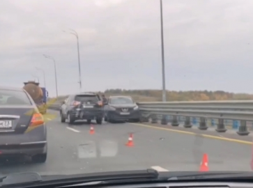 Второе ДТП на Президентском произошло на этой же полосе - машина врезалась в отбойник. О пострадавших не сообщается.