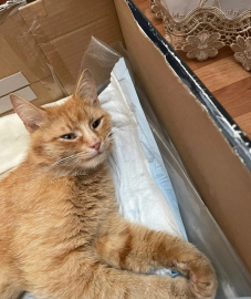 Она также добавила, что котик очень умный: из переноски сам идёт в свою коробочку и только там любит спать.