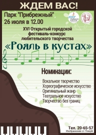 В парке «Прибрежный», который находится в Заволжском районе Ульяновска, 26 июля пройдет открытый городской фестиваль-конкурс любительского творчества «Рояль в кустах». Начало в 12:00.