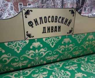 Около месяца назад диван утащили на «перетяжку», оставив только цельнометаллические тапочки. Общественность разволновалась, но её быстро успокоили. И вот 31 октября обновлённый арт-объект вернулся на своё место. Он сиял своими боками и знаменитой зелёной «обивкой». Но ярче всего блеснула табличка на спинке – «ФИЛОСОВСКИЙ ДИВАН». Нелепая ошибка была немедленно обнаружена той самой общественностью, вызвала негодование в мэрии, которая немедленно потребовала стереть этот грамматический позор с лица окололитературного памятника…