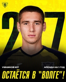 В грядущем сезоне Умников продолжит выступать за «Волгу» на правах годового арендного соглашения с «Краснодаром».