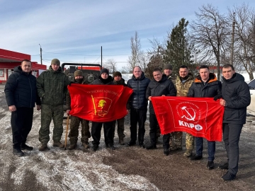Сенатор РФ Айрат Гибатдинов, депутаты Антон Шилов, Роман Султашов, военкор Алексей Лашманов и комсомольцы Ульяновской области навестили военнослужащих именного батальона «Свияга» на передовой.