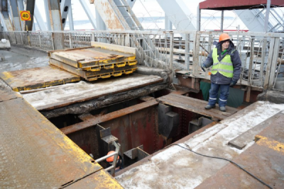 Сегодня ночью, а также 19 и 20 апреля подрядчик продолжит замену деформационных швов на волжской переправе.