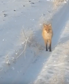 Сегодня, 17 февраля, во время патрулирования госинспекторами национального парка «Сенгилеевские горы» к ним пришла лиса.