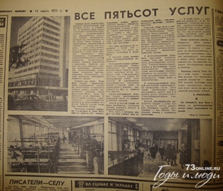 Универсальный Дом бытовых услуг в центре Ульяновска принял первых посетителей 14 марта 1975 года. В «Ульяновской правде» об этом публиковалась заметка под названием «Все пятьсот услуг».