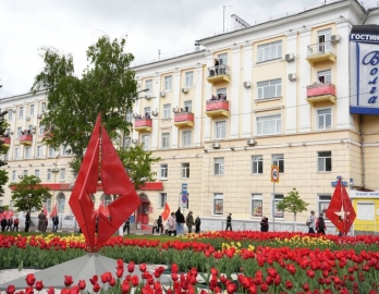 На спуске к Вечному огню на площади 30-летия Победы установят пять вазонов в форме звёзд, топиарные фигуры из искусственного газона и флаговые конструкции в виде шаров, на месте «цветочных часов» – инсталляцию «Звезда из ух частей», а на бульварной части улицы Гончарова – инсталляцию «Огонь Победы».