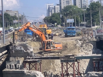Разборка середины старого моста над Свиягой выполняется по графику. Со стороны улицы Минаева заканчивают демонтаж старой опоры, а со стороны Московского шоссе разбирают мостовые перекрытия и пролётные балки.