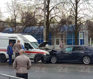 От удара машину скорой помощи отбросило на стоявшую на перекрестке иномарку «Тойота Камри».