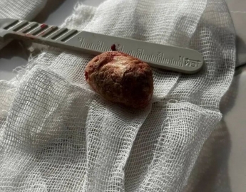 Вчера, 24 февраля, в Ульяновской областной клинической больнице челюстно-лицевые хирурги удалили из слюнной железы 45-летнего пациента огромный камень. Он был размером 3,5х2 см. Как отмечают сами хирурги, они впервые столкнулись с конкрементом таких размеров.