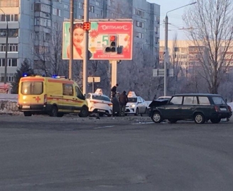 Сегодня утром на перекрестке проспектов Ульяновского и Ленинского комсомола произошло ДТП: столкнулись иномарка «Яндекс.Такси» и ВАЗ.