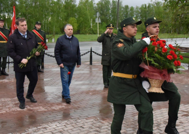 Глава города в честь дня Великой Победы возложил цветы к памятнику «Журавли», который расположен на кладбище «Северное» (ишеевское).
