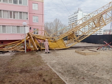 Башенный кран рухнул рядом с жилыми домами напротив шестиэтажки по улице Поселок УКСМ. Удар был такой силы, что стоявшие рядом дома пошатнулись, жильцы услышали сильный грохот. Момент падения крана попал на камеры, кадры опубликовали в соцсетях.