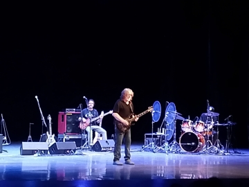 70 лет Кузьмину исполнилось ещё в мае 2025 года. И с тех пор он периодически даёт юбилейные концерты. В Ульяновске было заметно, что годы берут своё. Его гитарные риффы по-прежнему заводят, но вот он сам всё чаще присаживался на стул в глубине сцены.