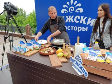 На сцене проводили квизы и викторины с розыгрышем призов среди гостей Дня молока. Здесь же устроили кулинарный поединок: шефы Анатолий Иванушкин и Мария Павлова готовили из продукции компании «Волжские просторы».