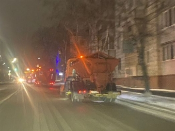 Бригады «Дорремстроя» работают в две смены. Для обработки проезжей счасти и тротуаров за сутки было использовано более 600 тонн противогололёдных материалов.