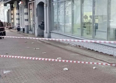 Булыжники сыплются на ульяновцев с фасада дома №24 по улице Гончарова. Фасад здания огородили запрещающей проход лентой.