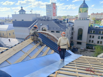 - Даже подвозить материал и поднимать его наверх весьма непросто. Согласно разработанной проектно-сметной документации, мы немного приподнимаем стропильную систему. Делаем новую над старой, крайне несовершенной в эксплуатации – из-за этого намокали стены. Разные уклоны тоже усложняют работу монтажников.
