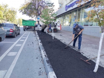 На тротуарной части центральной улицы городские озеленители высадят новые деревья взамен утраченным.