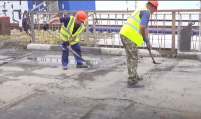 За выходные рабочие должны выполнить устройство примыкания, после чего снимет аппарель через первый деформационный шов со стороны Заволжского района.