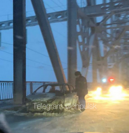 Сегодня утром, 14 января, в Ульяновске произошёл пожар: посередине Императорского моста загорелся легковой автомобиль.