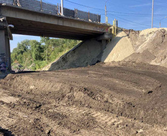 Под путепроводом на «минаевском» мосту в Ульяновске сделали площадку для устройства буронабивных свай. Территорию, на которой будет свайное поле, расчистили от строительного мусора, распланировали грунт и укрепили откосы. Сейчас проектировщики с помощью нивелиров размечают места бурения скважин.