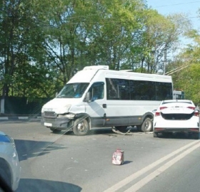 Авария произошла около 10:00 перед поворотом на Императорский мост. Автомобиль Hyundai Solaris врезался в маршрутку. На месте ДТП работают сотрудники Госавтоинспекции. О пострадавших не сообщается.