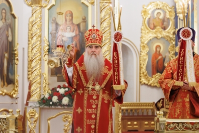 Праздничное богослужение предварял крестный ход вокруг храма. Затем, на богослужении, Владыка прочитал «Слово огласительное на Святую Пасху» святителя Иоанна Златоуста.