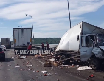 Сегодня, 12 августа, в Ульяновске на Президентском мосту по направлению в сторону северной части города столкнулись фура и ГАЗель, которая перевозила арбузы, овощи и фрукты.