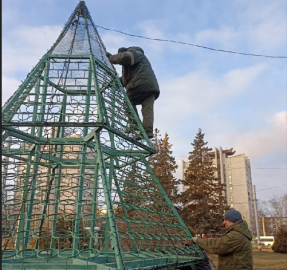Сегодня, 7 декабря, сотрудники учреждения работали в Засвияжском районе города. Они на Пушкаревском кольце повесили гирлянды на «горшкоелке».