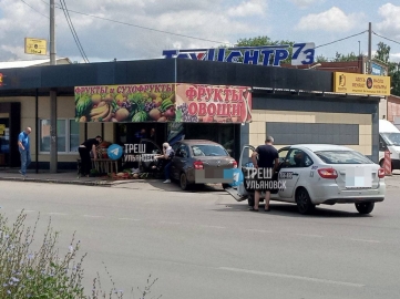 Сегодня, 24 июня, в Заволжском районе Ульяновска произошло ДТП: у рынка на улице Тельмана автомобиль «Лада Гранта» врезался в торговый прилавок с овощами и фруктами.