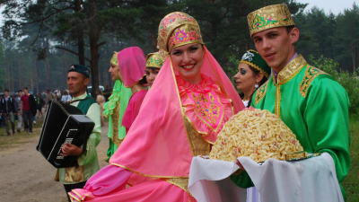 По традиции праздник включает большую гастрономическую программу с национальными татарскими блюдами.