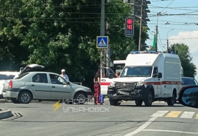 Сегодня днем, 10 июня, в северной части Ульяновска столкнулись легковой автомобиль и машина скорой помощи.