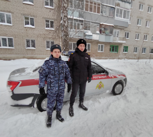Так, следующие по маршруту патрулирования росгвардейцы - сержанты полиции Максим Гильманов и Александр Каушас - обратили внимание на машину, завязшую в снегу на обочине дворовой территории по улице Северный Венец.