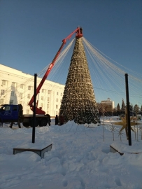 Специалисты «Горзеленхоза» демонтируют новогоднее оформление.