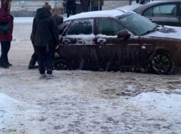 Сегодня днем, 26 декабря, в самом центре Ульяновска отечественная легковушка провалилась в открытый канализационный колодец.