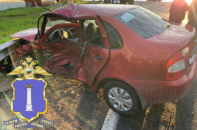 От удара отечественную легковушку отбросило на отбойник.